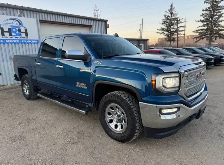 H & H BODY AND MECHANICS 3370 WILKES AVENUE, WINNIPEG MANITOBA. CALL ME @(2o4)2296171 FOR MORE INFORMATION   2017 GMC SIERRA 1500, Blue, 130,185 Kilometers   8 Cylinder Gas, Automatic Transmission, Hard Top, Air Conditioning, AM\FM\CD, Anti-Lock Brakes, 4WD, 5 Passenger, Leatherette, Power Driver and Passenger Seats, Heated Seats - Driver and Passenger, Air Bag - Single, Air Bag - Dual, Power Steering, Power Locks, Power Windows, Cruise Control, Traction Control, Navigational System, On Star, Sirius Satellite Radio, Bluetooth, Back-up Camera, Side Airbag - Front, Adjustable Steering Wheel, Rear Defrost, Xenon Headlights,   COMES SAFETIED, AND READY TO GO and much more! We at H & H We are here to help you. Bank Financing Available! The price you see is the price you pay! Only $29,999 + taxes. Dealer permit #5610